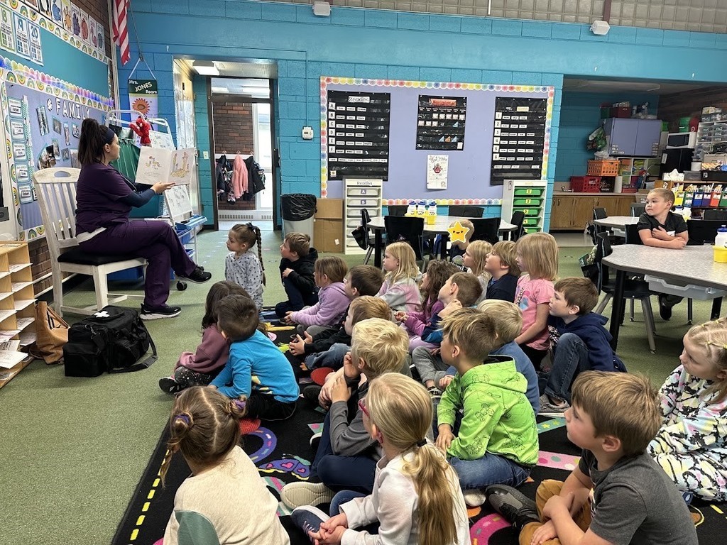 Mrs. Jones and her Kindergarteners had a special visitor last week when Mrs. Lewis, the district nurse, came to talk about her job to the students!